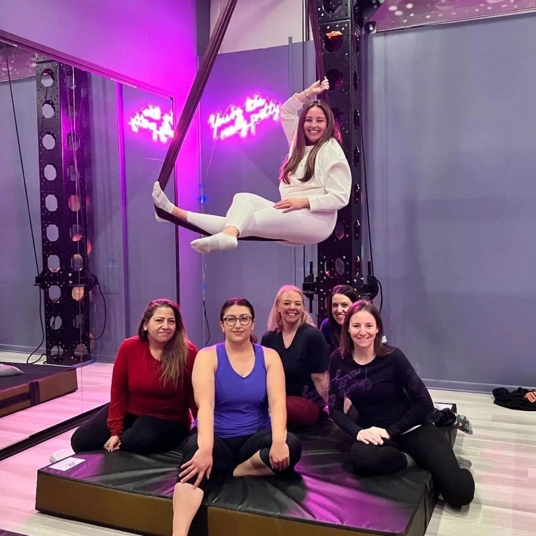 Grab your favourite people and your favourite yoga mats and take a break from the world with an aerial yoga party. A mix of yoga, barre, and pilates using the fabrics will have you feeling stretchy, strong, and renewed.